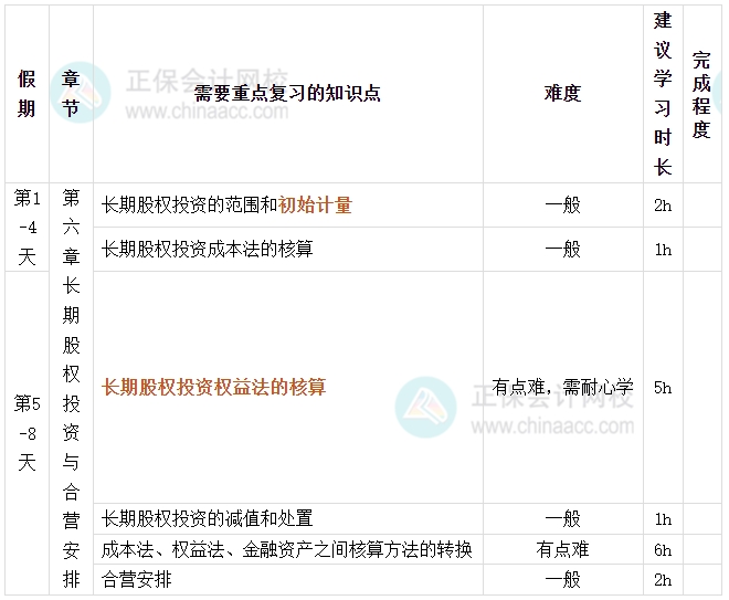 对于老考生来说,已经有学习基础了,因此十一期间可以针对第六章长期股权投资的内容做复习巩固。第六章长期股权投资与合营安排属于重要章节,内容多,而且长期股权投资是学习合并报表的基础,历年考试分值占比在12~17分左右,利用十一假期拿下第六章,对之后备考来说是非常至关重要的。