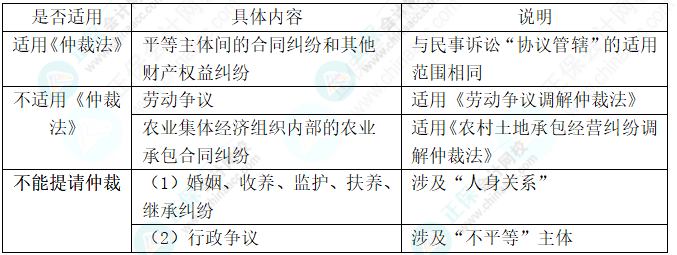 【注意】“不适用《仲裁法》”并非不能提请仲裁;“不能提请仲裁”一定不适用《仲裁法》。