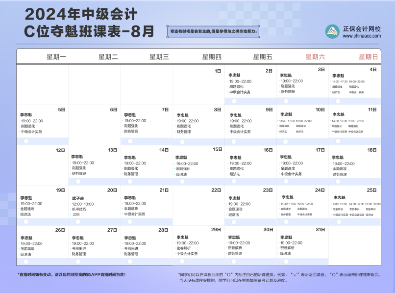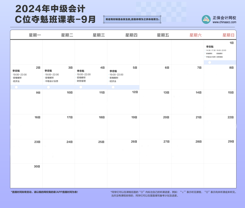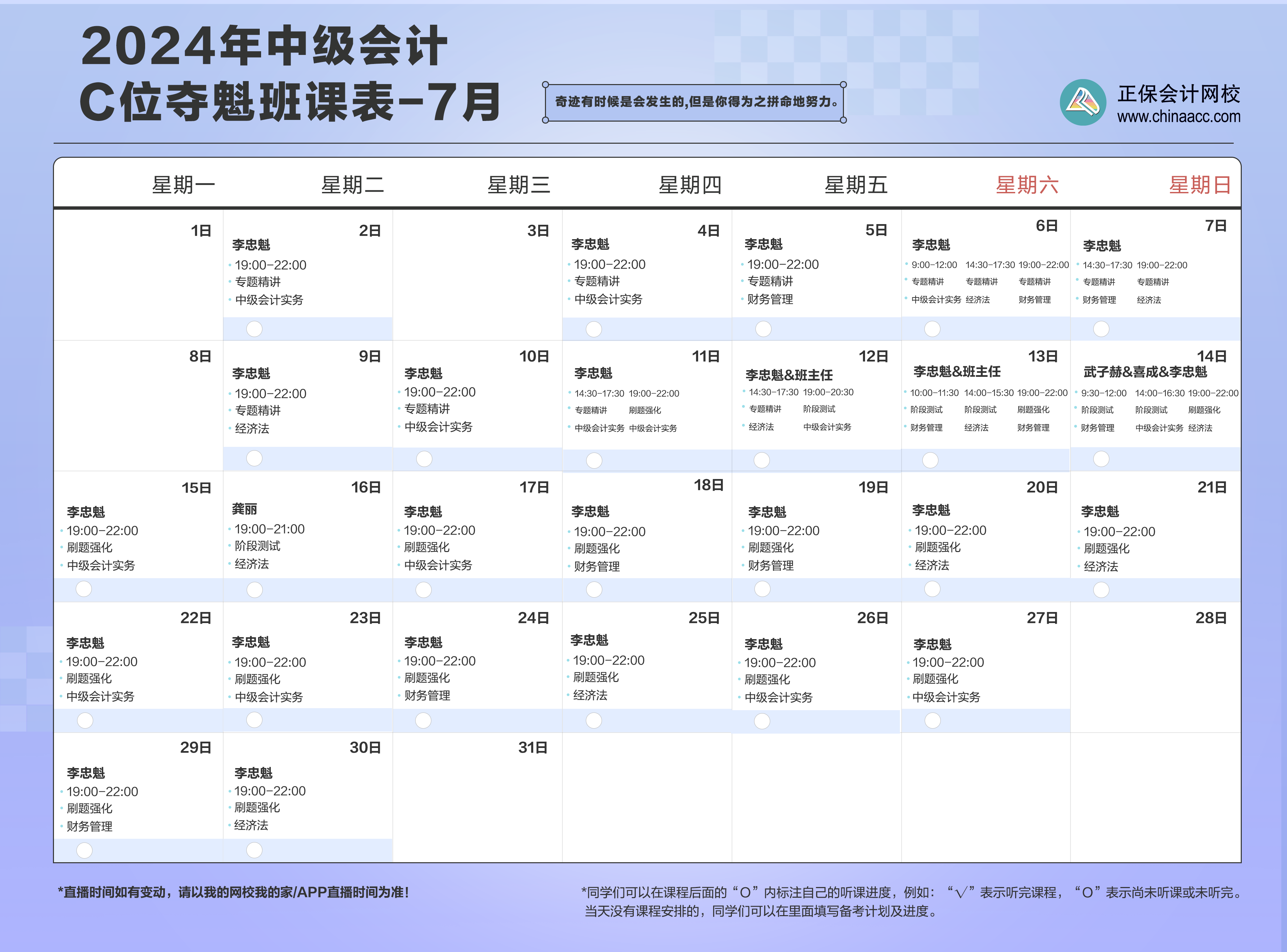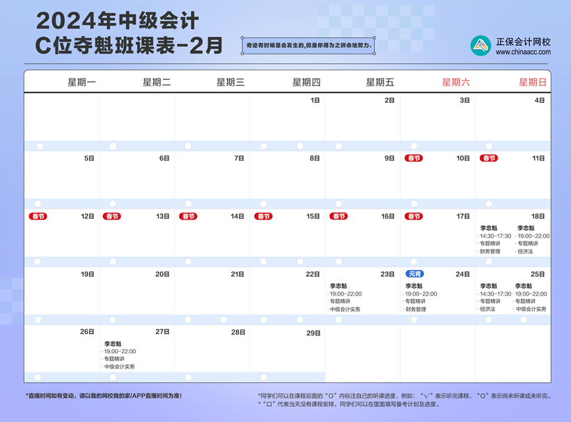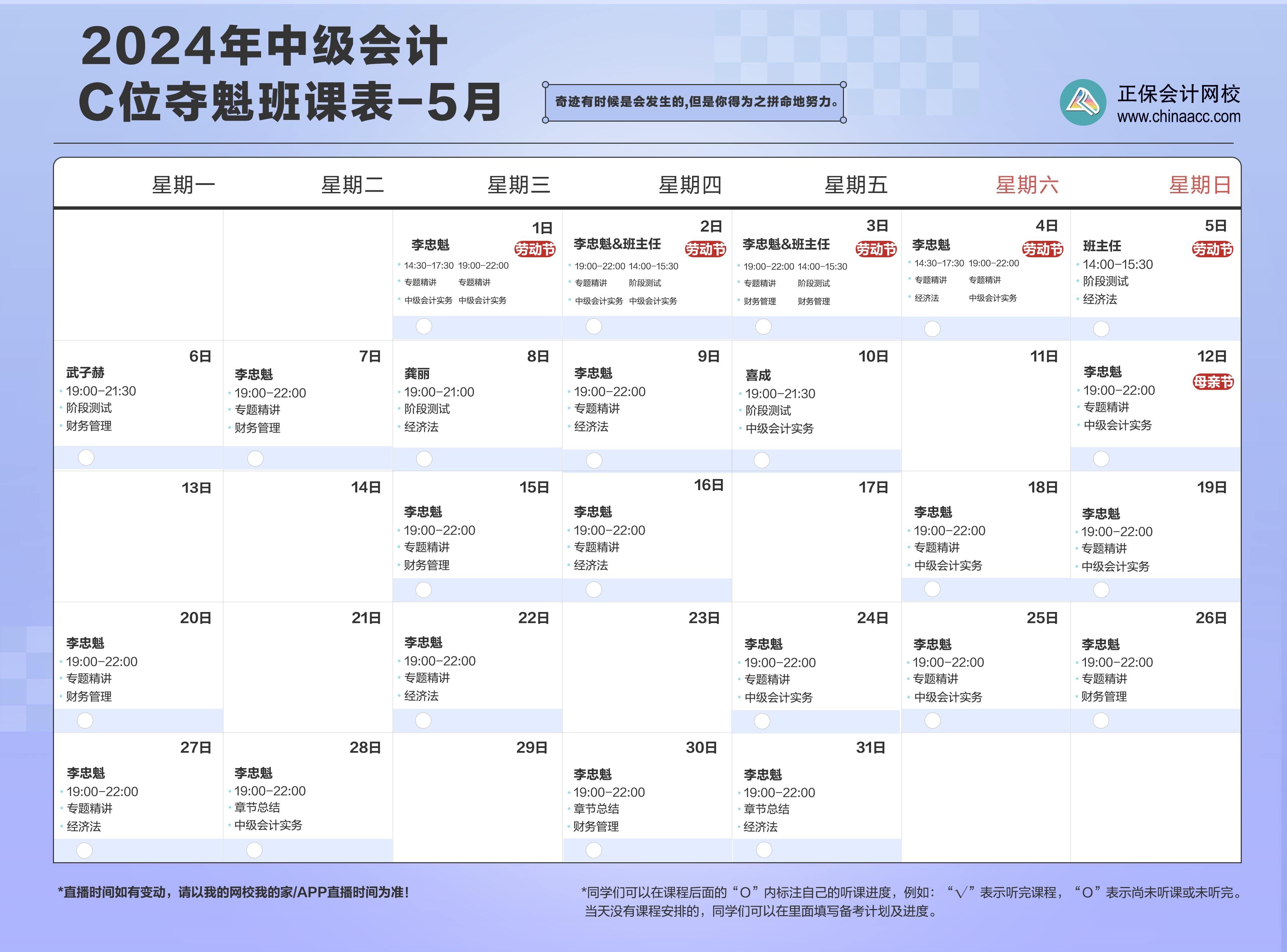 2024年中级会计职称备考正在进行中,李忠魁老师已经给C位夺魁班的同学们做好了学习计划啦!这份直播课表请查收,按时上课不要迟到哦!