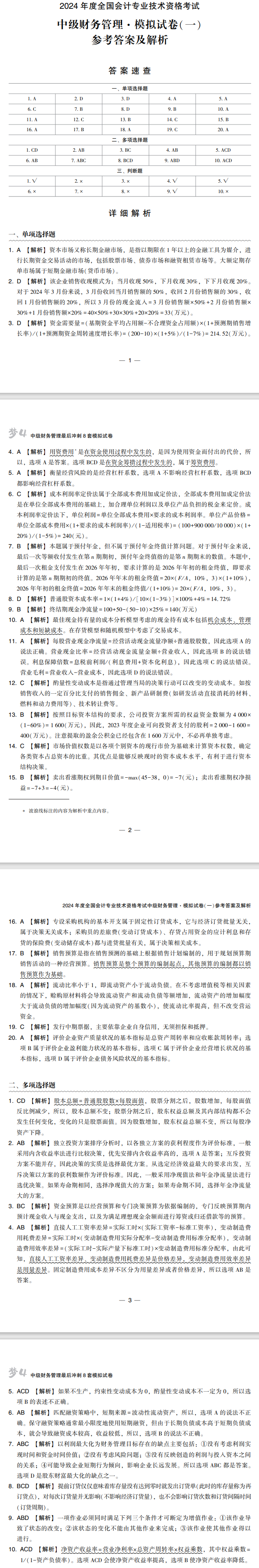 2024年中级会计教材公布后,为了让各位中级会计考生了解真正考试试题的范围及难度,特准备了2024年中级财务管理《最后冲刺8套模拟试卷》免费试读版参考答案!希望对大家的备考有所帮助。