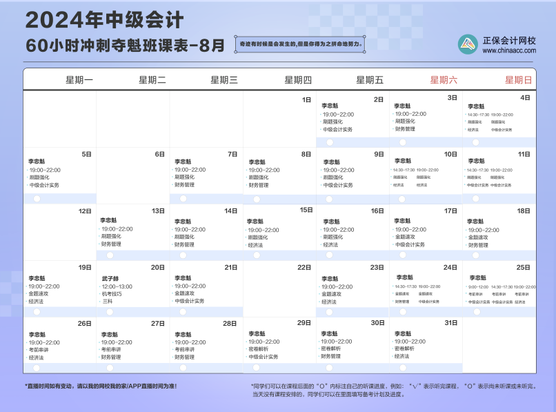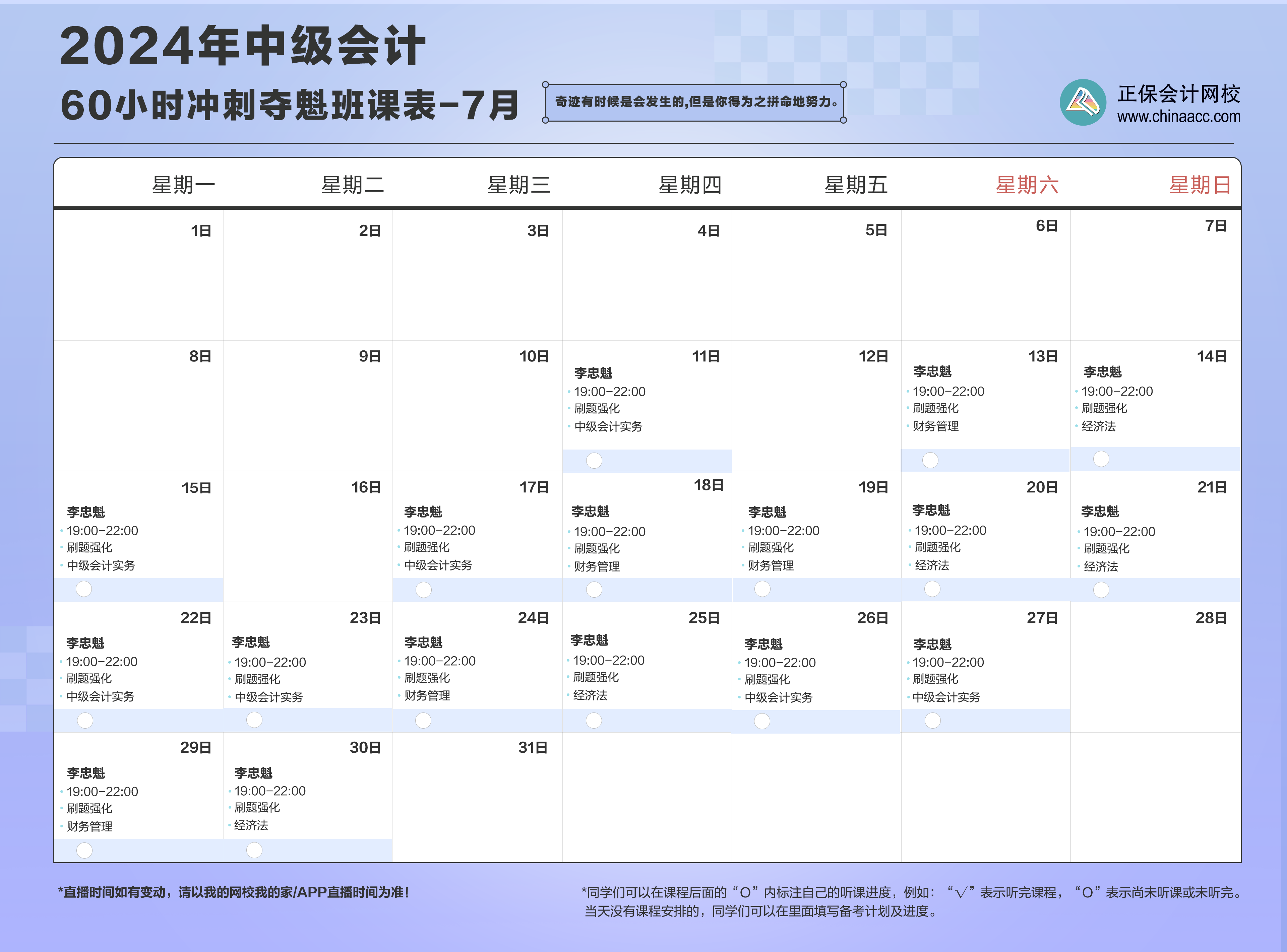 2024年中级会计备考正在火热进行中,60小时冲刺夺魁班直播课表请同学们收好,准时上课,不要迟到哦!