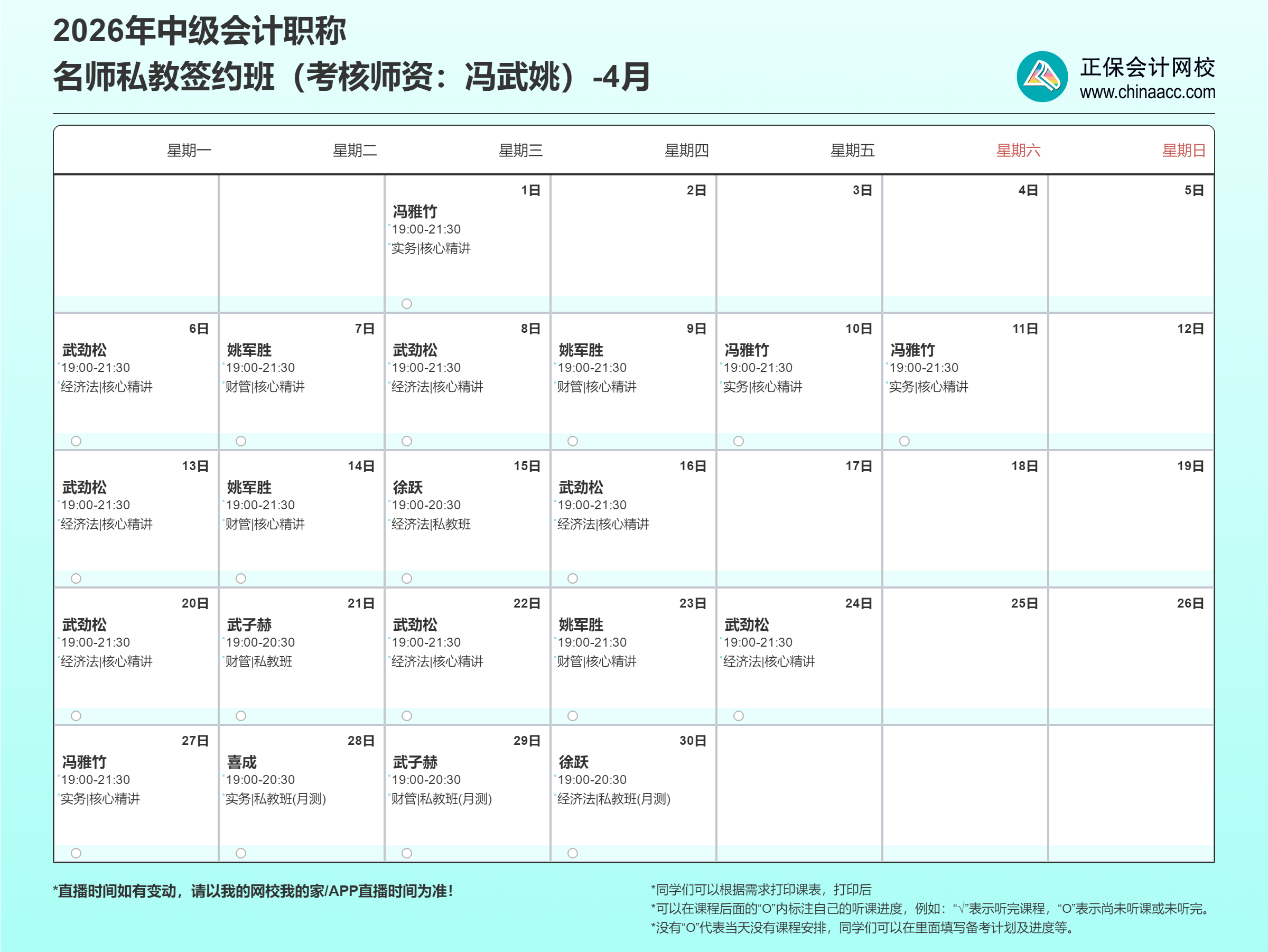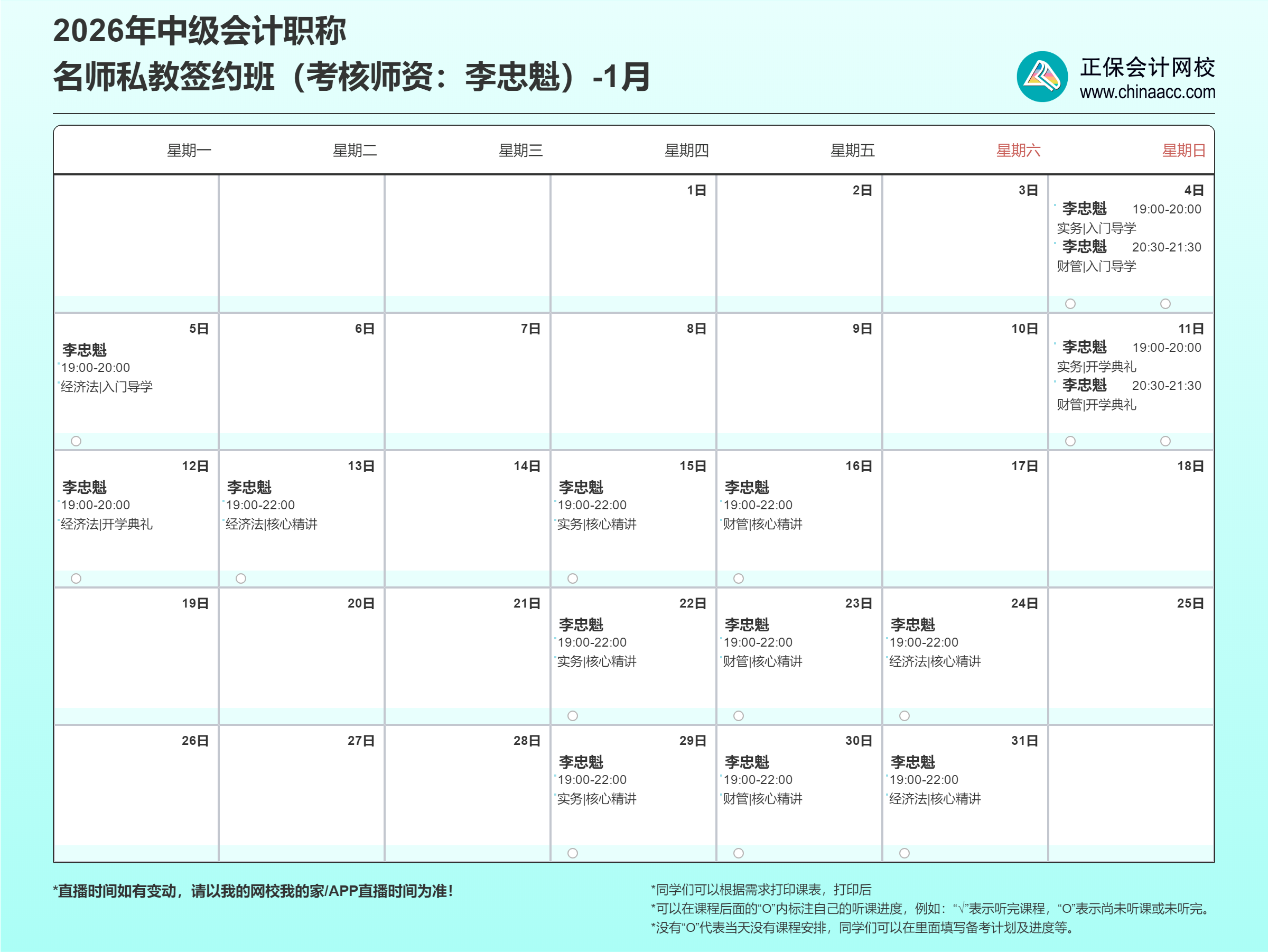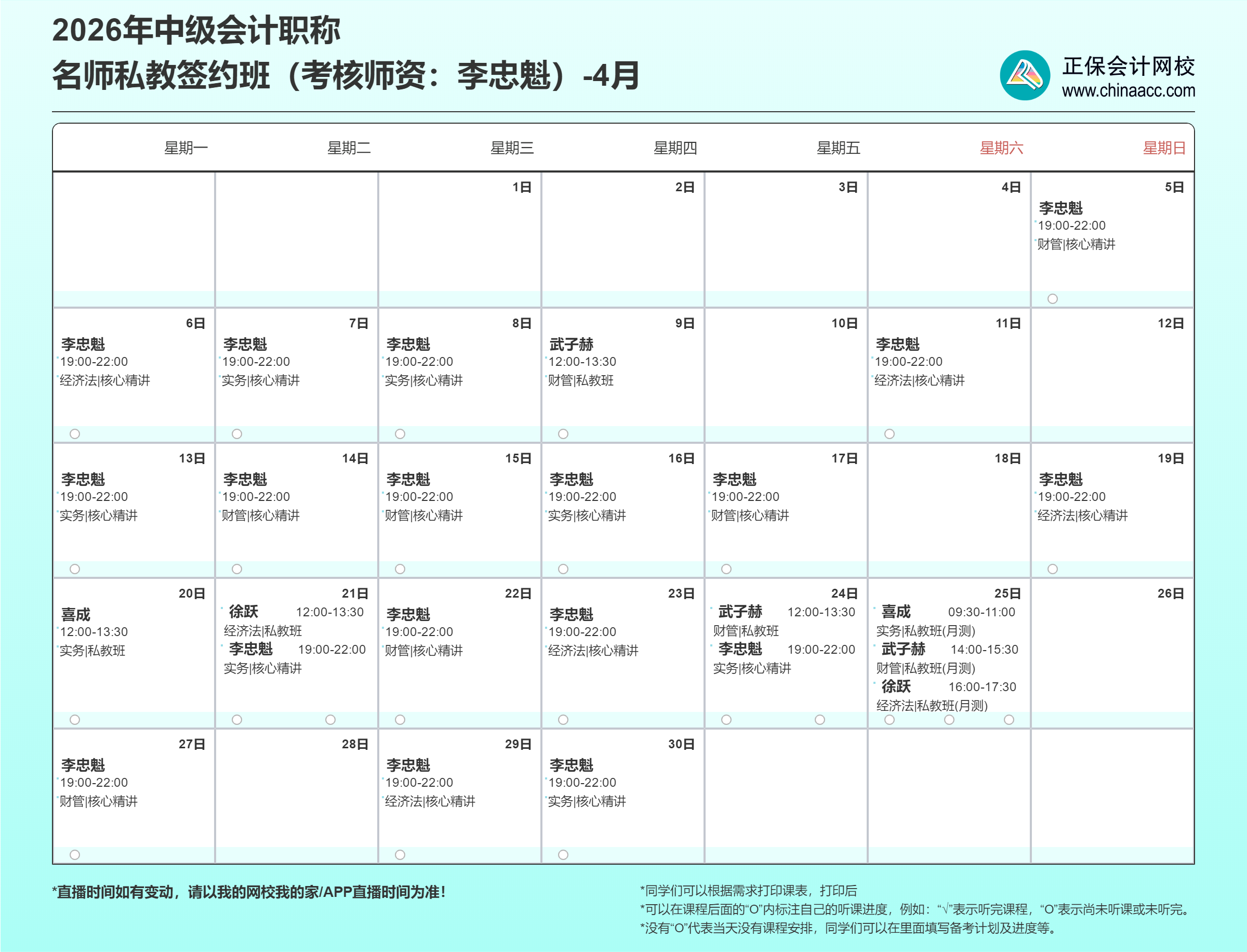 2026年中级会计的备考征程,网校名师私教签约班陪您从现在开始!这份直播课表请收好,记得按时来上课哦!