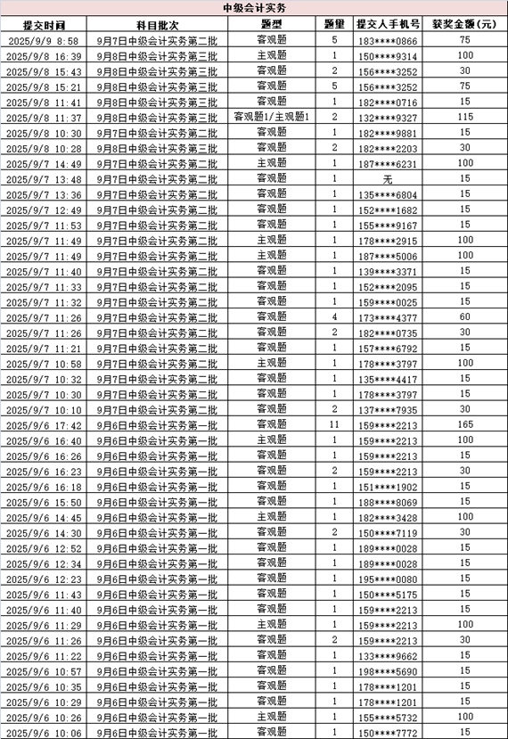2025年中级会计考试结束后,网校发起了考试试题有奖征集的活动,提交2025年中级会计考试试题并通过审核、采纳后,即可获得现金奖励。活动一经推出,学员们积极参与,踊跃提供信息。