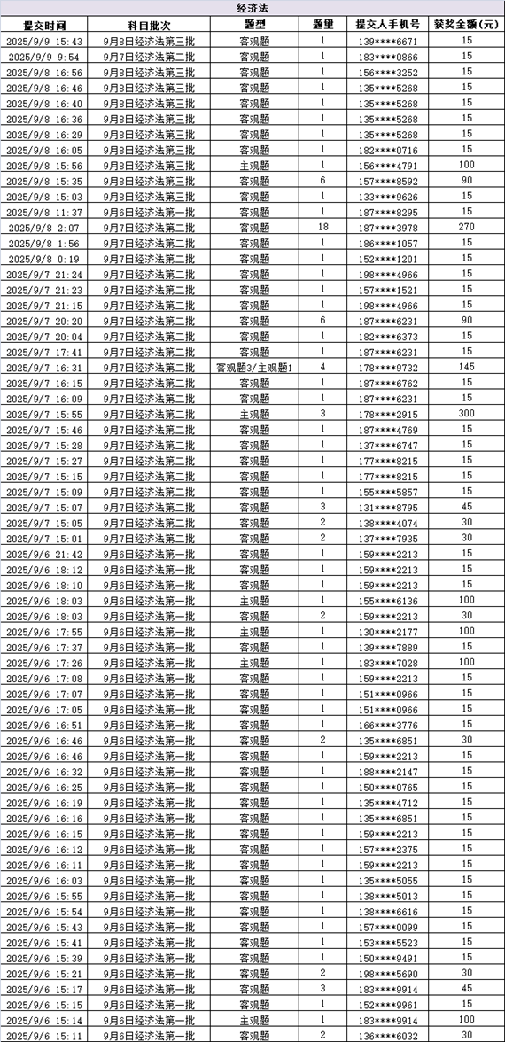 2025中级会计考试试题有奖征集名单如下,请名单内的学员10个工作日内(10月9日24点前)联系网校老师登记相关信息。逾期自动作废,请尽快联系管理员,谢谢。
