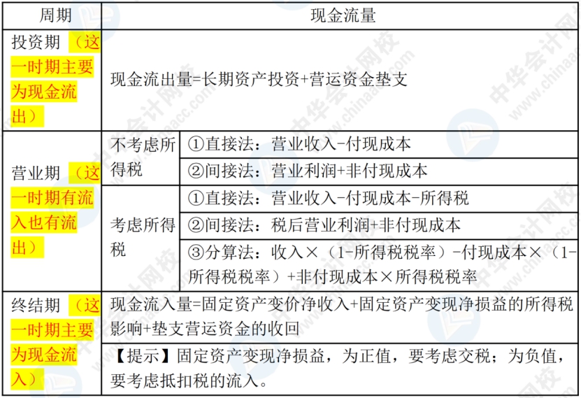 其次是第六章第二节项目现金流量的学习。一个长期投资项目一般划分为三个阶段:投资期、营业期、终结期。每个阶段的现金流量如何计算是个非常重要的问题。