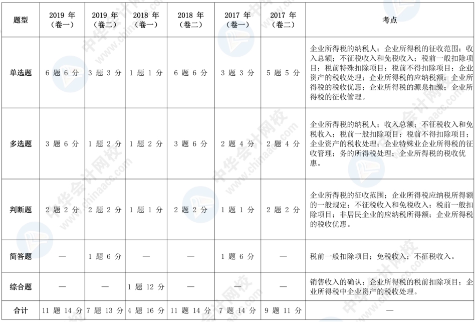只要我们列举出中级《经济法》的核心考点及各章近四年题型、考点及分值分布情况,就可以清楚看出《企业所得税法律制度》所占的分量很重,在历年考试中所占分值达到13-16分。因此在冲刺阶段需要考生重点复习,特别是以下几个核心考点: