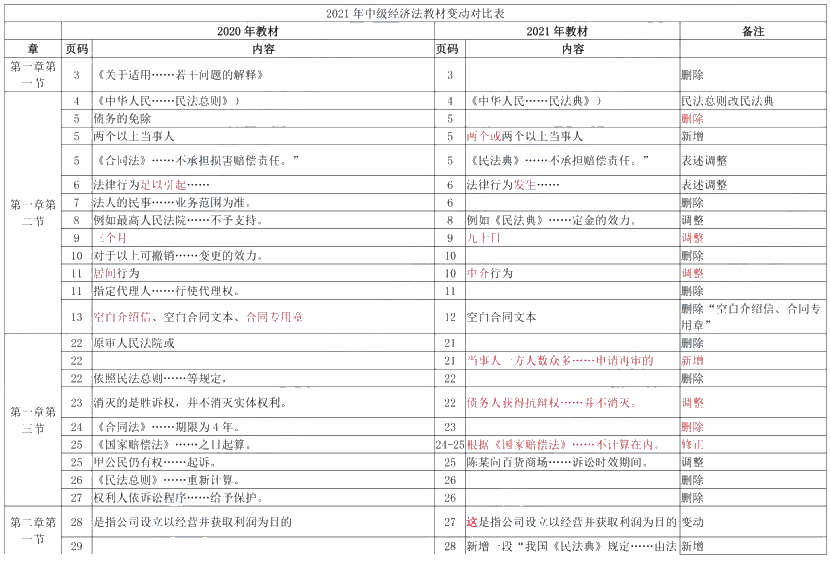 2021年中级经济法教材变动对比表(点击下载打印学习)