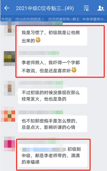 李忠魁是2021年中级C位夺魁班1团的授课老师,一人主讲中级三科目,特别适合学习能力弱、备考时间紧、自制力差的考生。不少学员被李老师的授课风格吸引,冲刺学习的效率也跟着提高。