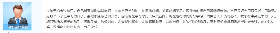 从大家的字里行间中能深深的感受到学员们对老师的感激之情,当然,对老师们最好的感谢就是拿下中级会计职称证书呀!