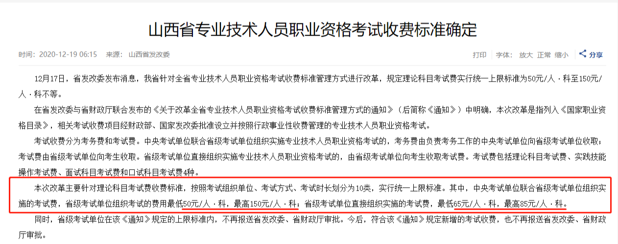 近日中级考生越来越关注2021中级会计职称考试报名相关事宜,这不,山西省人民政府发布了山西专业技术人员职业资格考试收费标准确定,事关中级考生,一起来看看吧!
