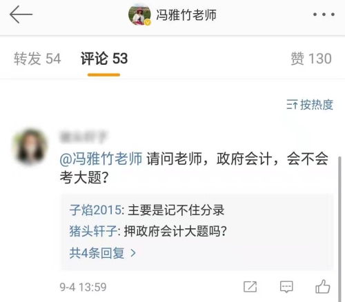 很多同学在冯雅竹老师微博下面问政府会计会不会考大题