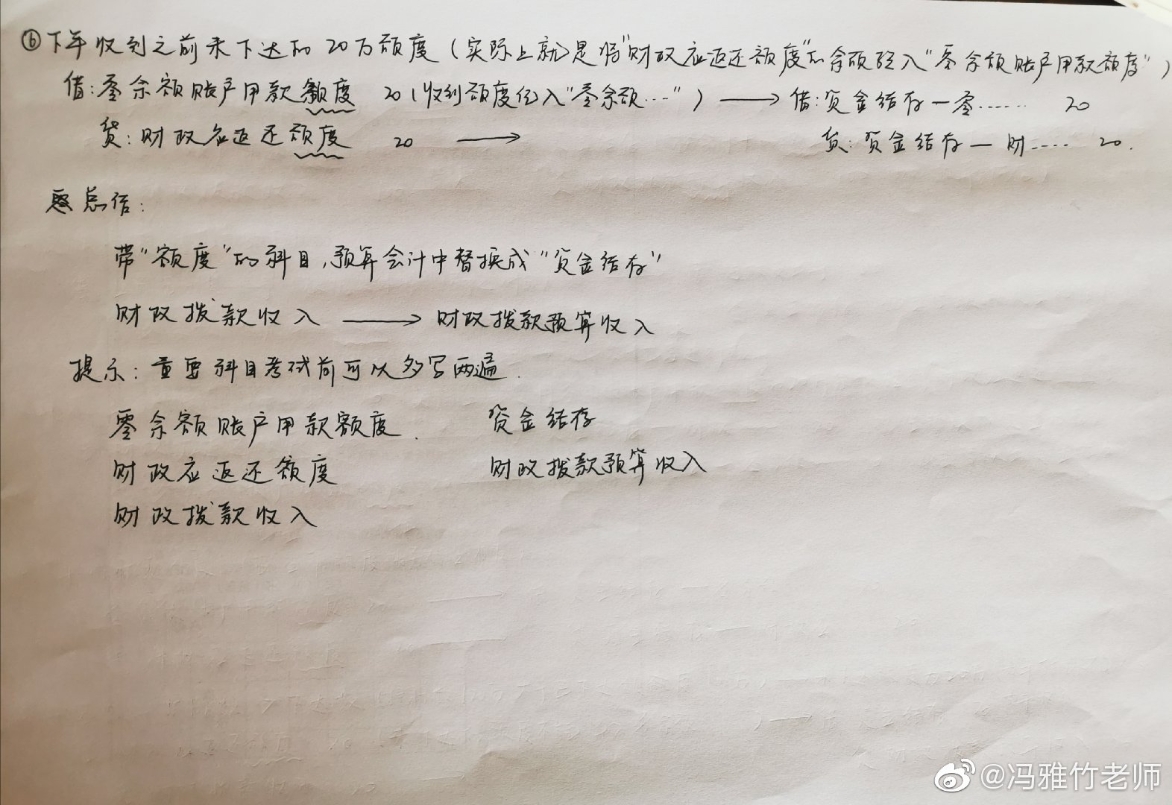 作为人美心善的“会计界邓丽君”,冯雅竹老师针对政府会计最重要的一块内容“财政授权支付”的账务处理做了一个总结。临考前不知道学什么的考生可以静下来看看这块的内容。