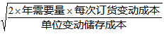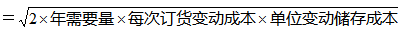 2.经济订货批量:使变动订货成本与变动储存成本之和达到最小值(或使二者相等)的每次订货批量。