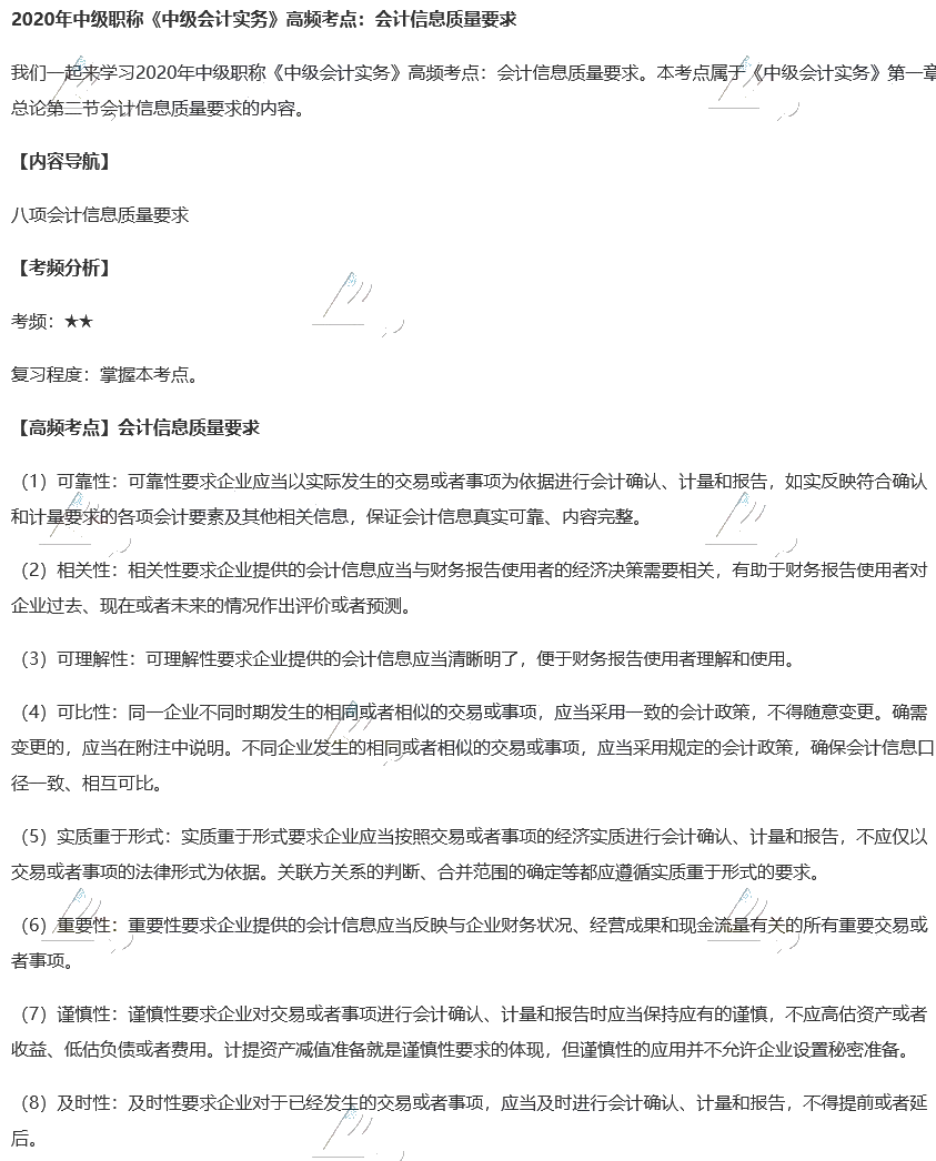 2020中级会计职称《中级会计实务》高频考点:会计信息质量要求
