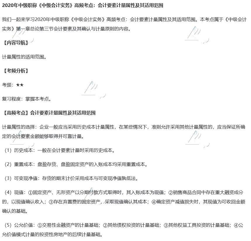 2020中级《中级会计实务》高频考点:会计要素计量属性及适用