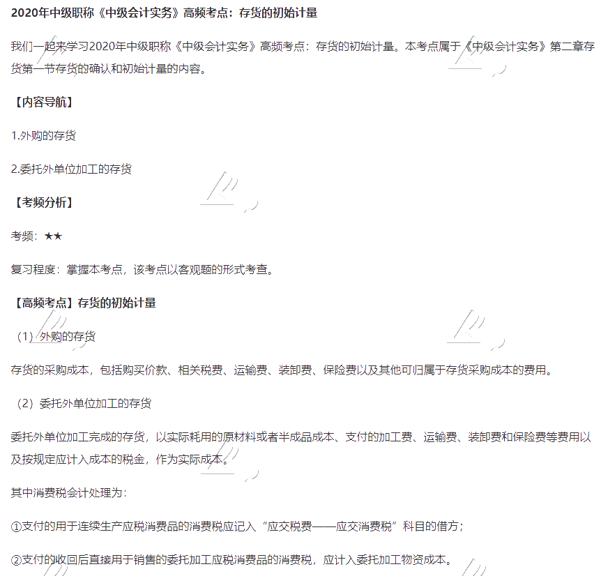 2020中级会计职称《中级会计实务》高频考点:存货的初始计量