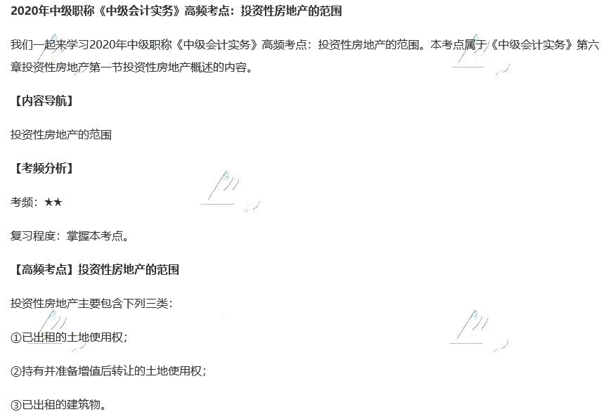 2020中级会计《中级会计实务》高频考点:投资性房地产的范围