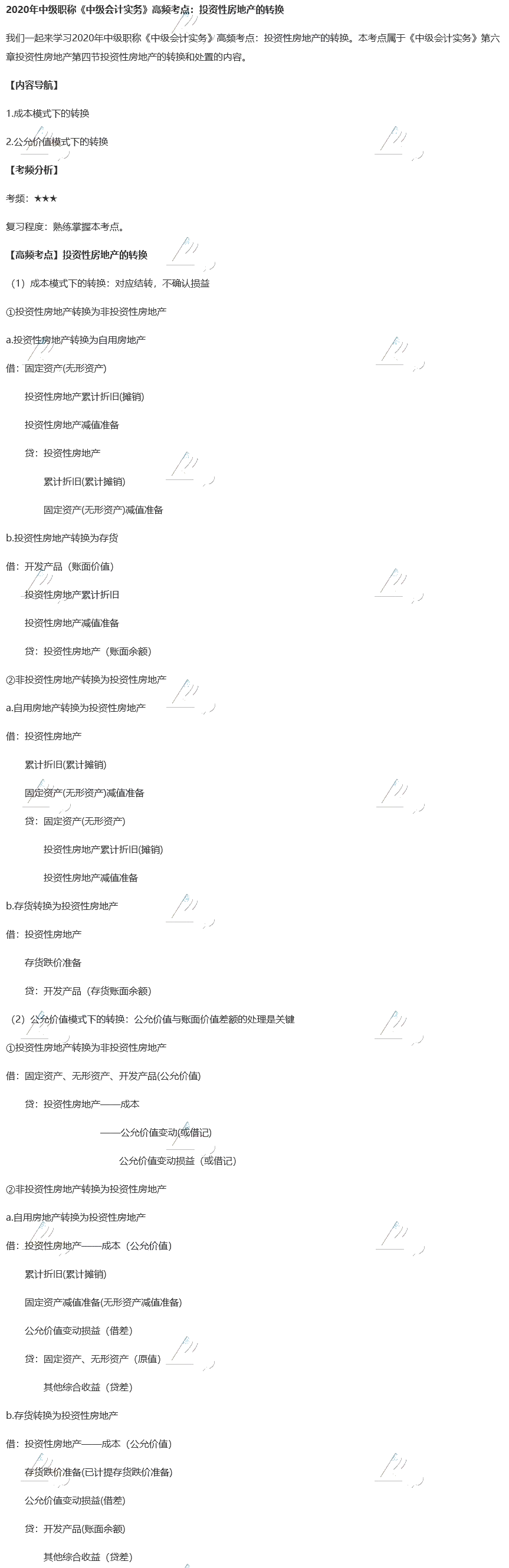 2020中级会计《中级会计实务》高频考点:投资性房地产的转换