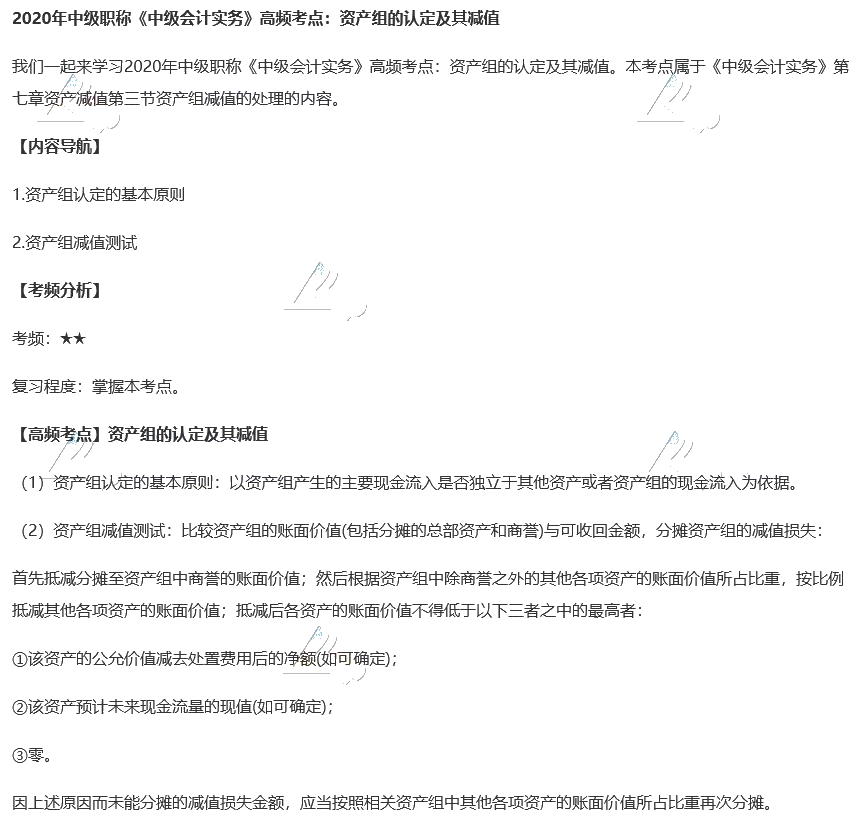 2020中级会计《中级会计实务》高频考点:资产组的认定及其减值