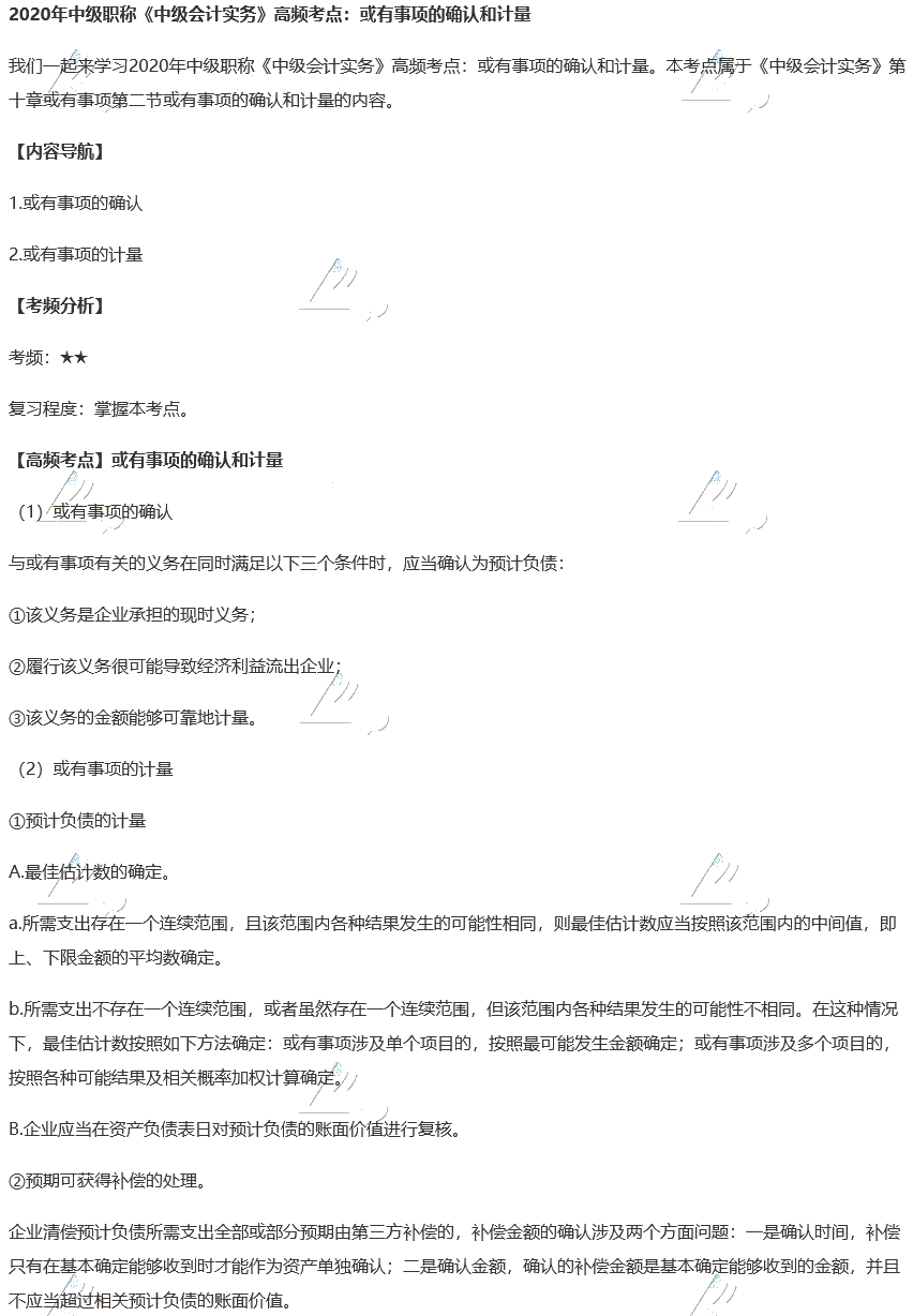 2020中级会计《中级会计实务》高频考点:或有事项的确认和计量