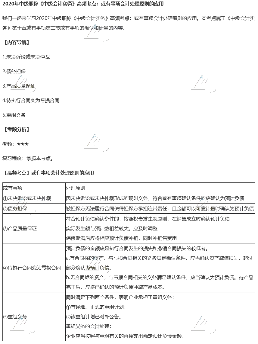 2020《中级会计实务》高频考点:或有事项会计处理原则的应用