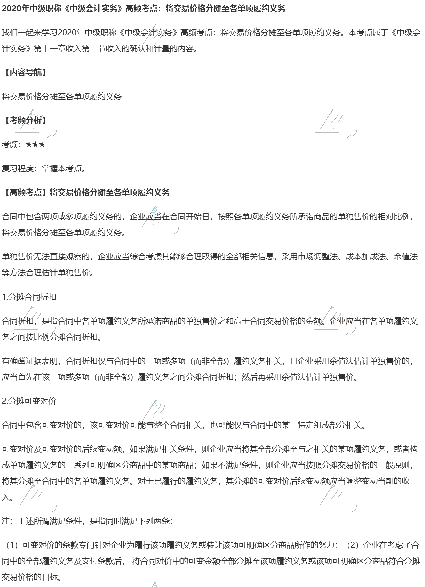 2020《中级会计实务》高频考点:交易价格分摊至各单项履约义务