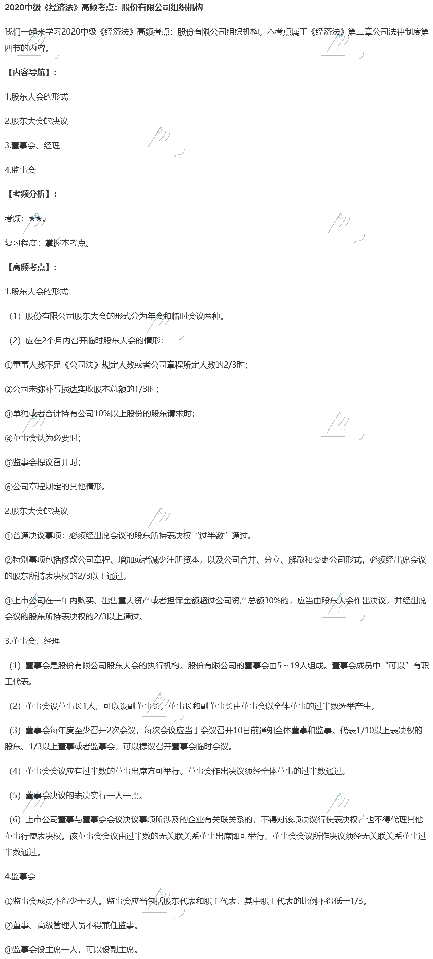 2020年中级会计职称考试备考正在进行中,为了帮助各位考生能够更顺利的备考,网校老师专门为考生准备了中级会计职称《经济法》高频考点总结。