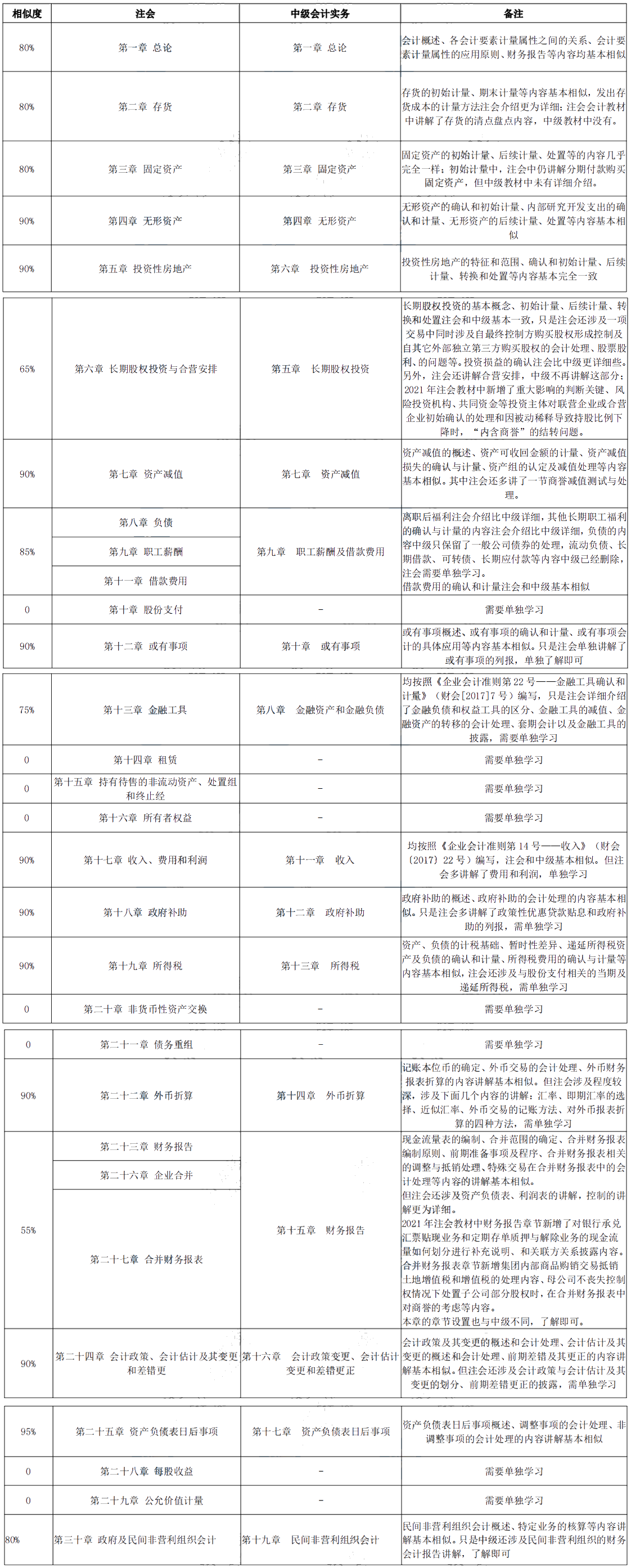 根据上表可以看出,注会考生考后备考中级会计职称,可以利用备考注会的优势来降低备考中级会计的难度。