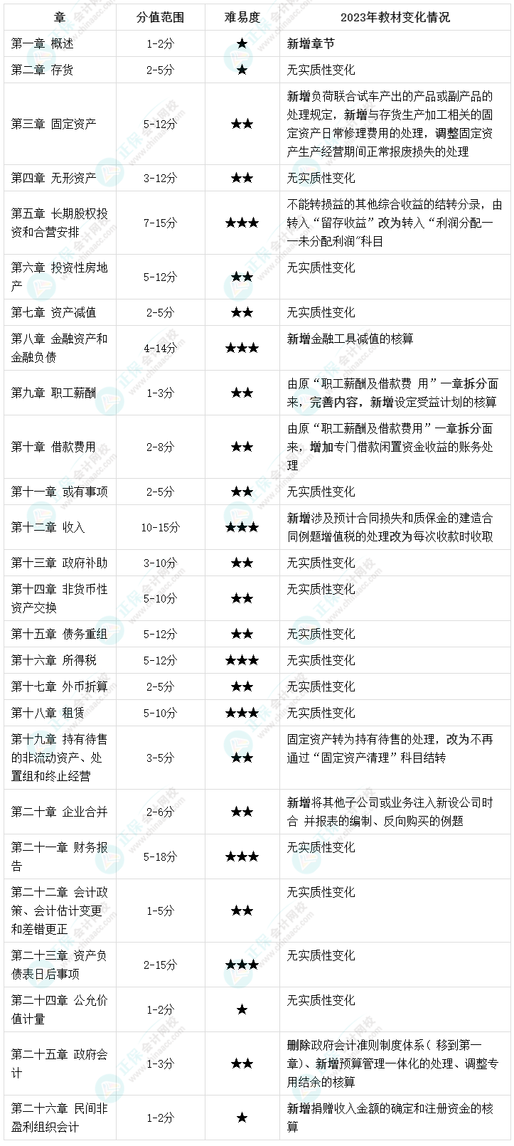 正保会计网校整理归纳了中级会计职称《中级会计实务》各章节分值&难易程度&教材变化情况,大家可以在备考时有侧重的学习重点章节。