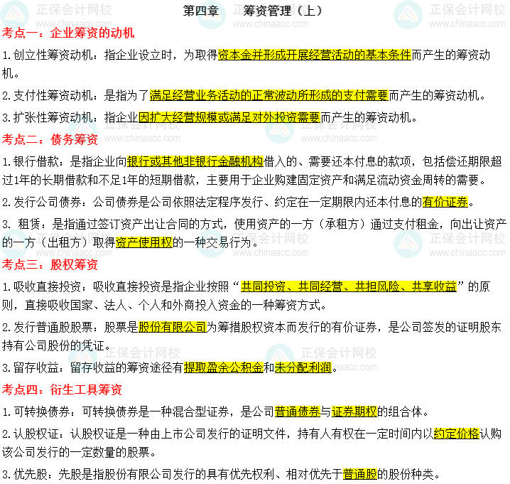【财务管理默写本——第四章 筹资管理(上)】