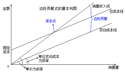 (4)以点(0,固定成本值)为起点,以单位变动成本为斜率,做总成本线。