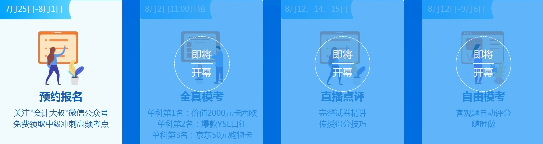 加入万人模考,全真模拟考试系统,不仅有好题,还有好礼品。第一名价值2000元卡西欧计算器,第二名爆款YSL口红、第三名京东50元购物卡,是不是很激动!考后更有老师为你直播点评,敬请期待吧,正保会计网校能带给你的不仅仅是成长,还有意想不到的惊喜。立即报名>>