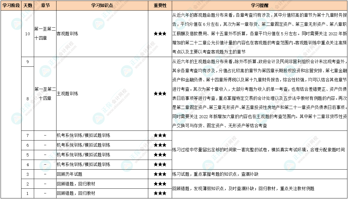 2022中级会计考试在9月份进行,距离中级会计开始越来越近,剩下的时间里该怎么学习最合适?网校特地为大家准备了百天冲刺备考倒计时计划表。以下为中级会计实务10-1天学习计划表,快来查收吧!