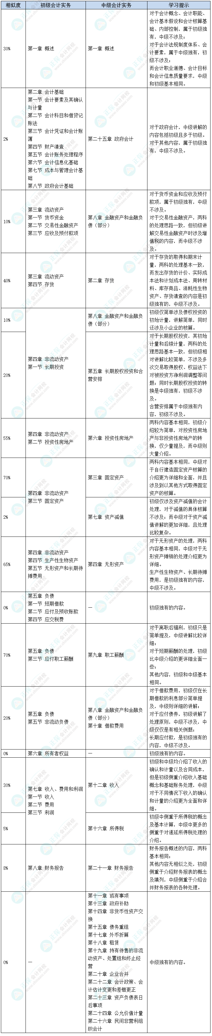 2023年初级会计实务和2023年中级会计实务教材均做了较大的调整,中级会计实务在初级会计实务的基础上考查的更深入,涵盖的知识点范围向注会会计方向靠拢,对比初级会计实务,我们可以发现部分章节内容相似度还是比较高的,比如交易性金融资产、存货、投资性房地产、固定资产、无形资产、职工薪酬等,这些内容在备考中级时可以通过做题加以巩固;而对于初级会计实务的第二章会计基础、第三章的货币资金、应收及预付款项、第四章的生产性生物资产、第五章的短期借款、应付及预收账款、应交税费、第六章的所有者权益及第八章的财务报告等内容,中级基本不涉及,需要备考初级的学员予以重点关注;对于初级会计实务不涉及,而中级独有的章节,在备考中级会计师考试时要多下些功夫。