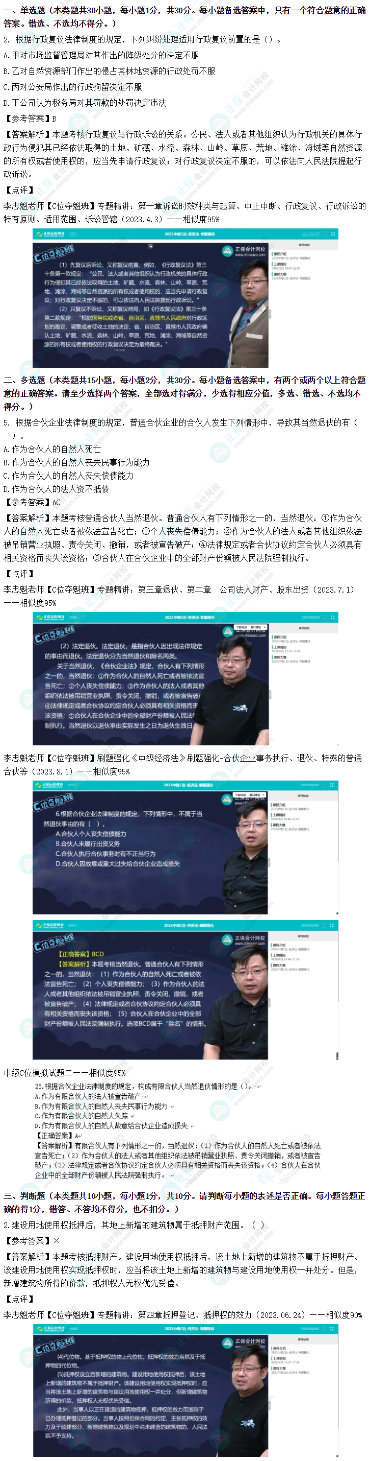 2023年中级会计考试已落下帷幕,回顾2023年我们走过的备考路,正保会计网校没有辜负同学们的希望,正保会计网校承载着学员们的支持与信赖,在2023年辅导期内成功带领学员在备考道路上砥砺前行!下面网校老师整理了【C位夺魁班】2023年中级会计考试《经济法》考生回忆试题及点评,速来围观~