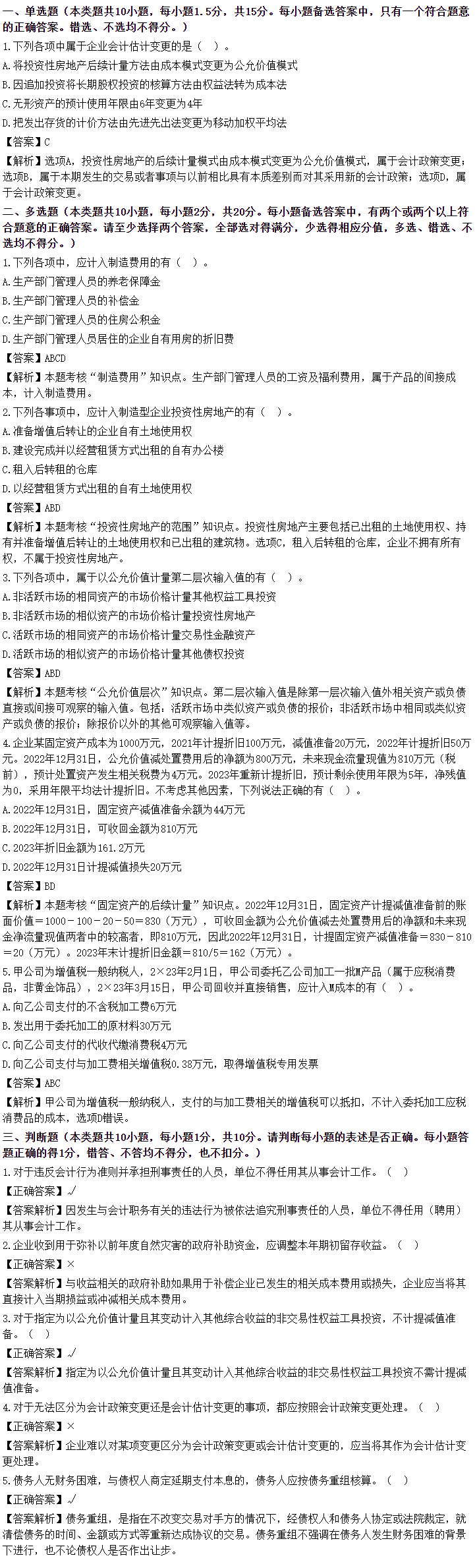 由于试题内容较多,仅展示2023中级会计考试试题部分内容,点击下方下载更多试题。