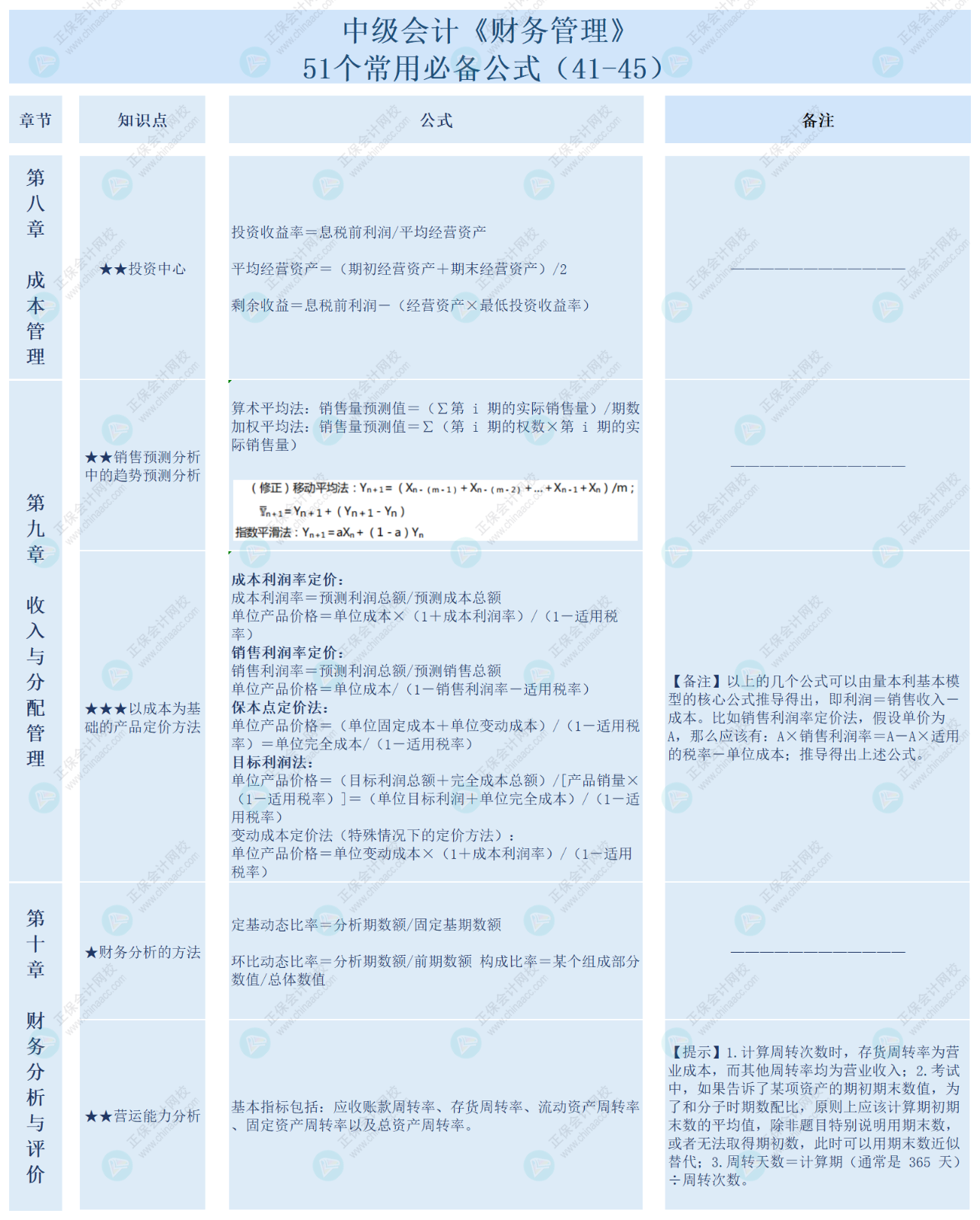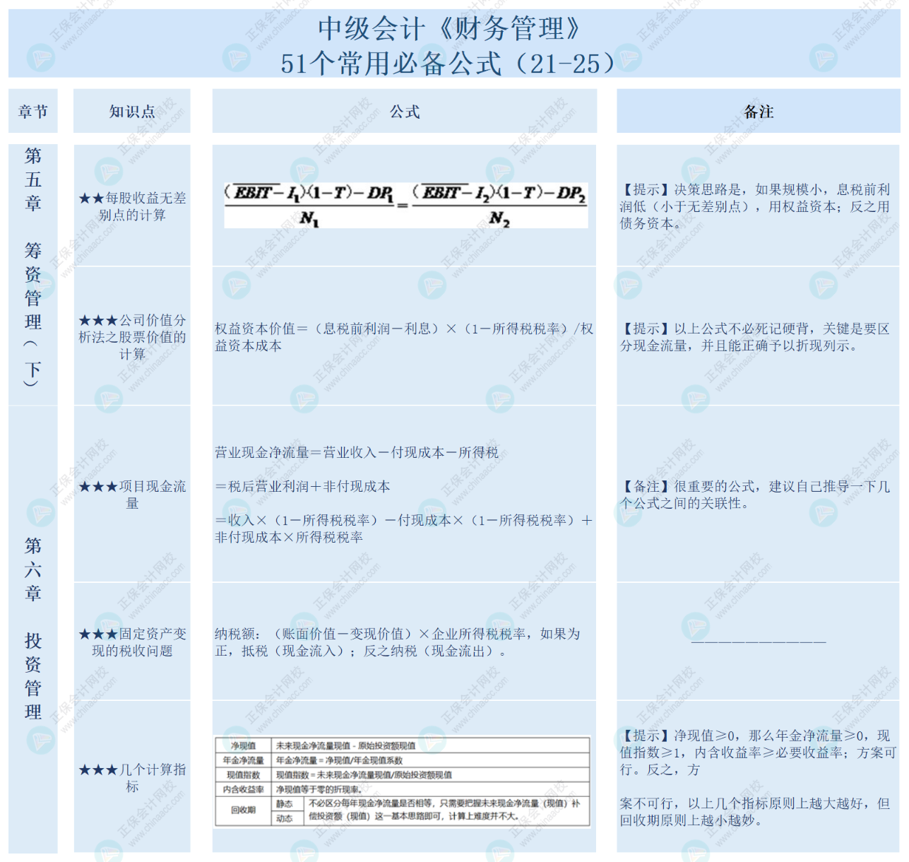 中级会计《财务管理》51个常用必备公式第九弹,请各位查收!51个常用必备公式就到此完结啦!