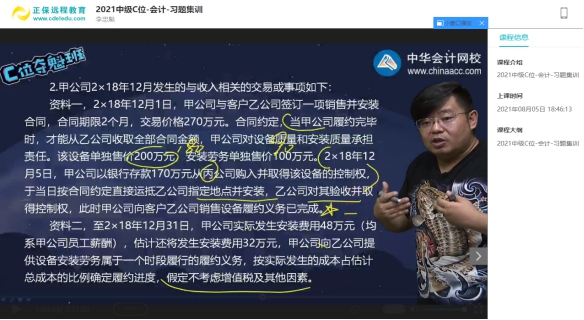 [C位夺魁班]李忠魁老师专题精讲(第十一章 收入特定交易的会计处理(2021.7.2)、第十一章 将交易价格分摊至各单项履约义务、履行每一单项履约义务时确认收入(2021.6.23))、习题集训(习题集训主观题(五)(2021.8.5))