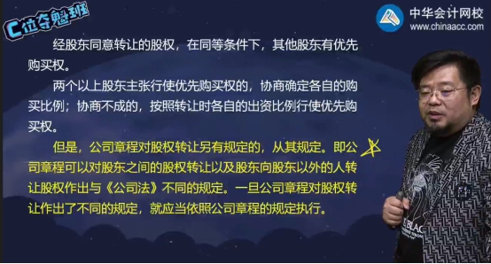 【点评】本题考核“股东之间转让股权”知识点。该题目所涉及知识点在正保会计网校2021年中级会计职称《经济法》辅导中均有体现:C位夺魁班专题精讲第二章 有限责任公司董事会、监事会、股权转让、一人公司、国有独资公司(2021.04.16)。