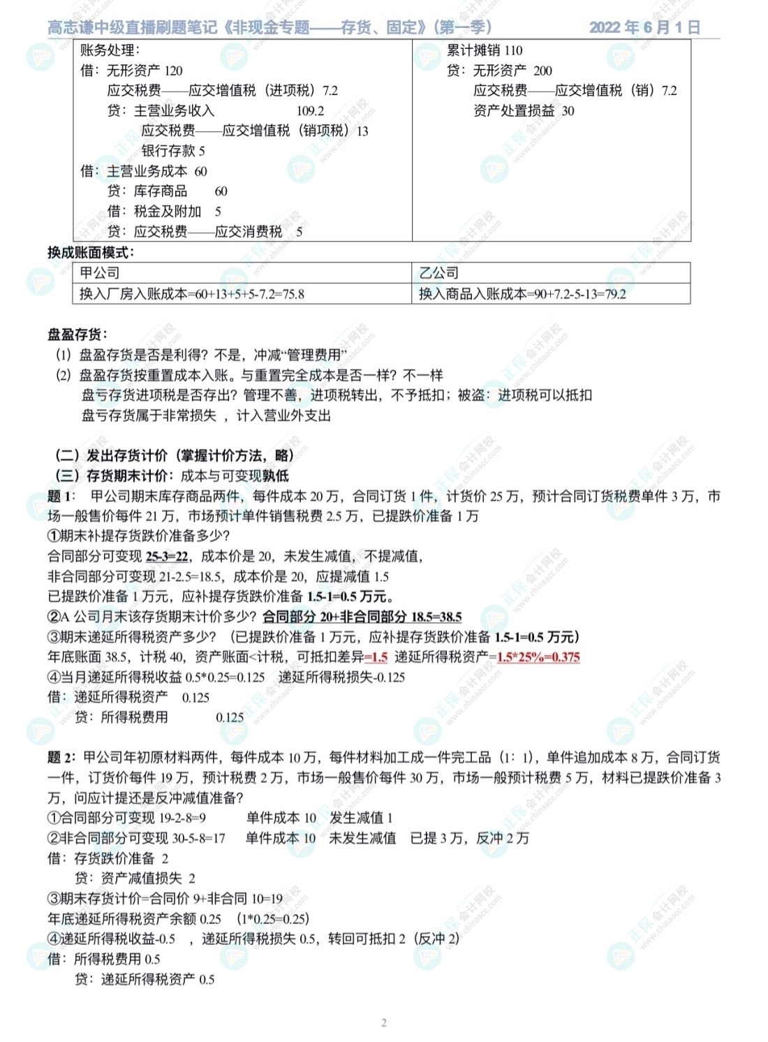 高志谦老师中级会计职称考前刷题笔记来袭!非现金知识点一刷就会!赶紧收藏!持续更新中......