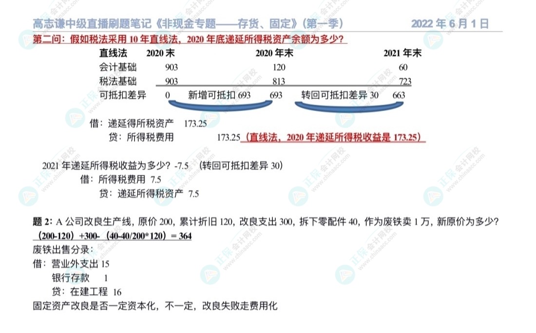 点击观看高志谦老师直播刷题非现金知识点讲解: