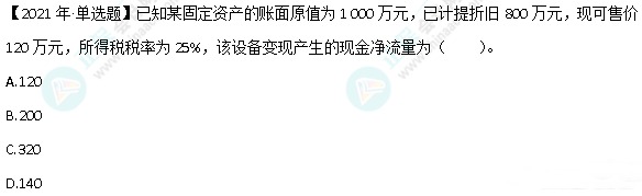 【解析】账面价值=账面原值-已计提的折旧=1 000-800=200(万元)