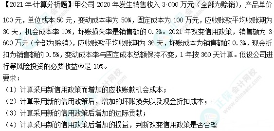 (2)采用新的信用政策后增加的坏账损失=3600x0.3%-3000x0.2%=4.8(万元)
