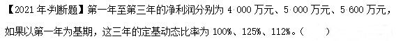 【解析】第一年定基动态比率=4 000/4 000=100%,第二年定基动态比率=5 000/4 000=125%,第三年定基动态比率=5 600/4 000=140%。