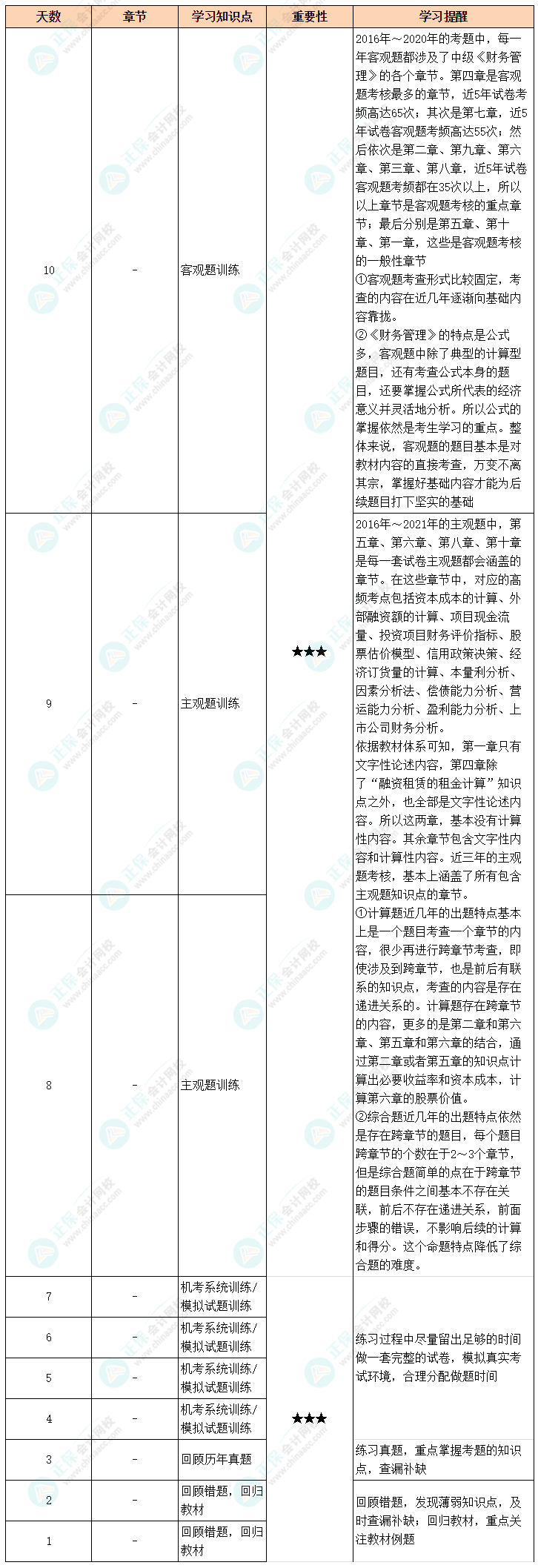 中级会计考试即将到来,接下来的时间同学们还是要按部就班的来学习,中级《财务管理》百天冲刺倒计时20-11天学习计划请同学们查收.