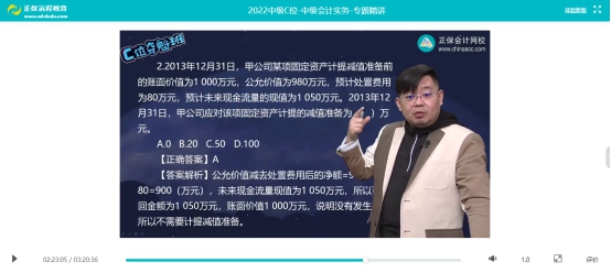 【点评】本题考核“固定资产减值金额的计算”知识点。该题目所涉及知识点在下列正保会计网校(www.fawtography.com)2022年中级会计职称考试辅导《中级会计实务》C位夺魁班中均有体现: