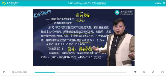 【点评】本题考核“固定资产的后续支出”知识点。该题目所涉及知识点在下列正保会计网校(www.fawtography.com)2022年中级会计职称考试辅导《中级会计实务》C位夺魁班中均有体现:
