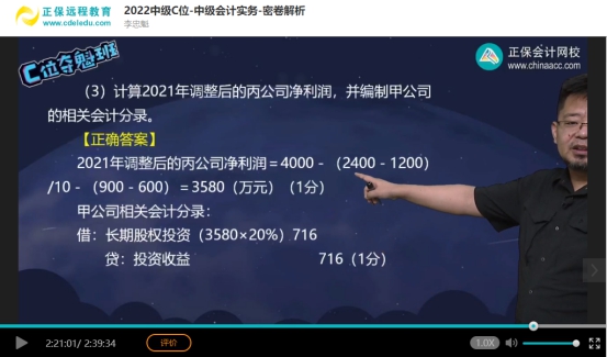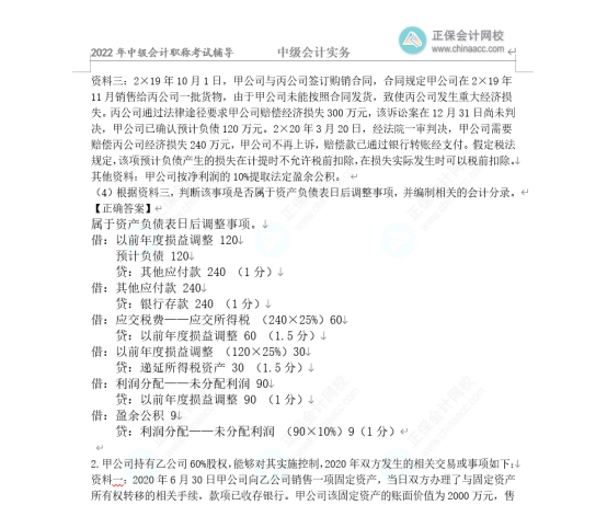 李忠魁老师【C位夺魁班】专题精讲:第二十章 差错更正、第二十一章 资产负债表日后事项、第二十二章 公允价值计量(2022.07.17);C位夺魁模拟试题(二)单选题第10题。