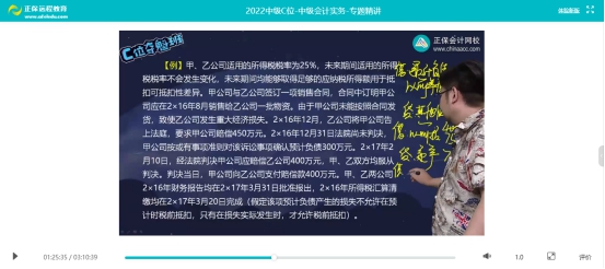 【点评】本题考核“所得税及日后调整事项的核算”知识点。该题目所涉及知识点在下列正保会计网校(www.fawtography.com)2022年中级会计职称考试辅导《中级会计实务》C位夺魁班中均有体现: