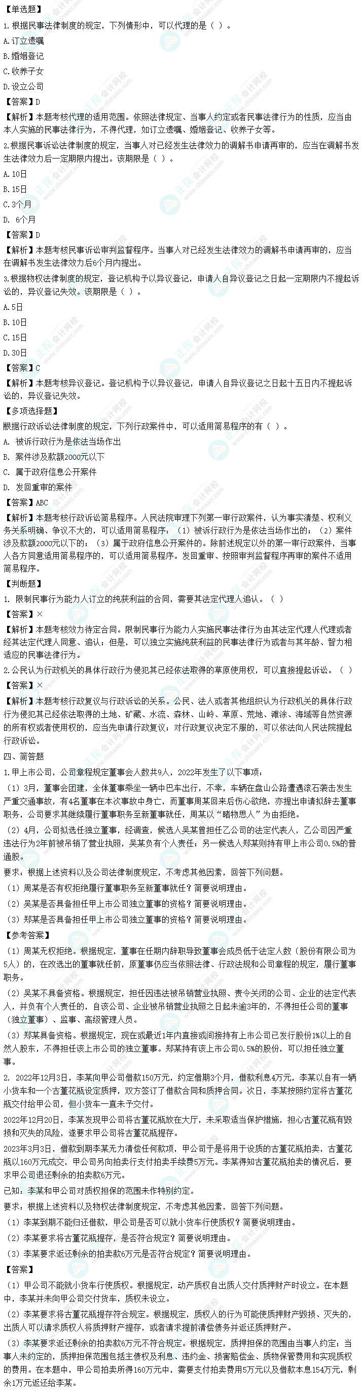 2022年中级会计师《经济法》科目延期考试已结束,大家考得怎么样?2022中级会计师《经济法》科目延期考试试题还记得吗?想对答案吗?正保会计网校为大家整理了部分2022年中级会计职称《经济法》科目延期考试试题(考生回忆版)及参考答案!供广大考生参考!现在让我们一起来看一下吧!